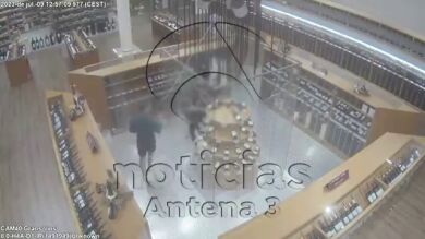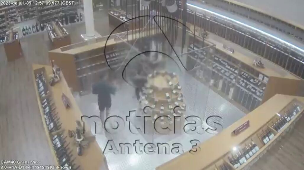 Son pocos los minutos que pasan hasta que una de las trabajadoras de la vinoteca les encuentra en plena acción y pega un chillido. Los ladrones comienzan a huir mientras la trabajadora les persigue por todo el local. Cuando se aproximan a la salida, donde se encuentra la cajera, el que llevaba las botellas en la mochila salta por encima del mostrador consiguiendo escapar.