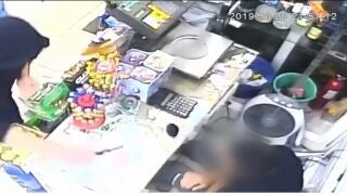 Las imágenes han sido captadas por las cámaras de seguridad en el establecimiento. El aumento de asaltos a comercios es tal que los pequeños y medianos empresarios, para defenderse, han recurrido a la tecnología y, desde ahora comparten un chat con la Policía para alertar de posibles atracos y presentar denuncias.