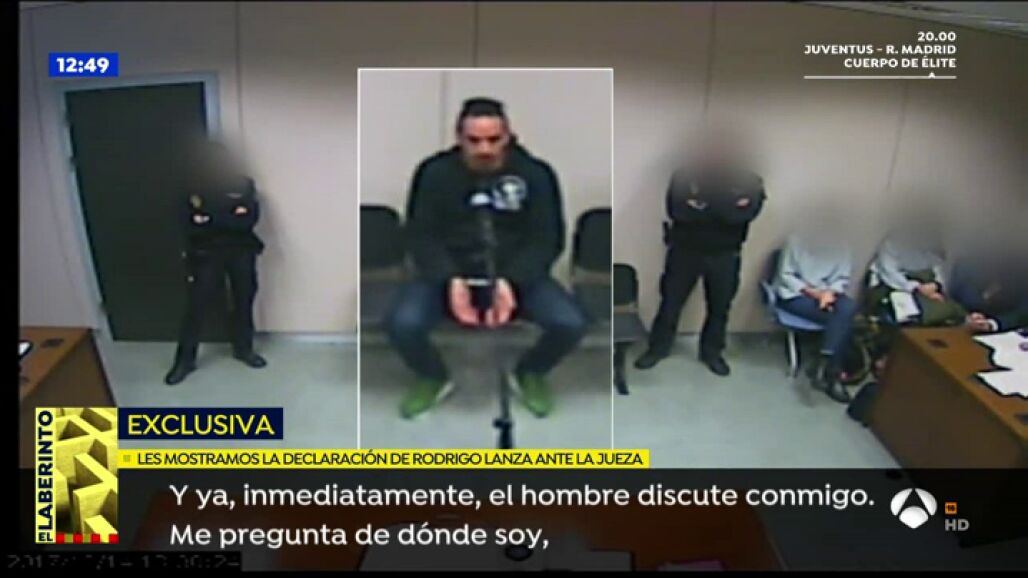 El programa Espejo Público ha tenido acceso en exclusiva a la declaración de Rodrigo Lanza, el hombre acusado de acabar con la vida de Víctor Laínez en un bar de Zaragoza por presuntamente llevar unos tirantes de la bandera española. El acusado planteó un relato de los hechos muy diferente que el de los testigos de la agresión mortal.