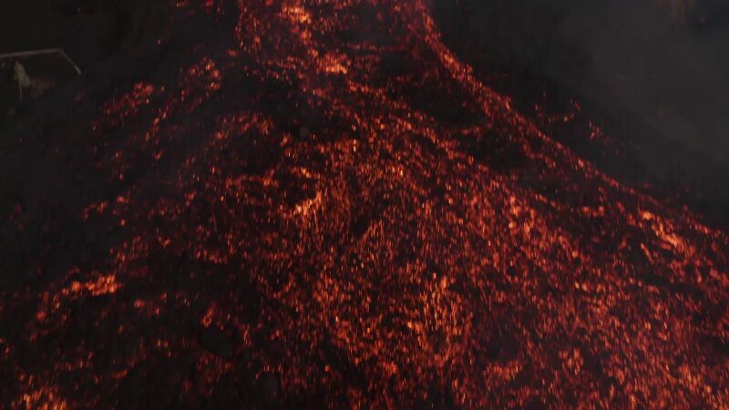 El volcán de La Palma tiene activos al menos cuatro centros emisores y la lava fluye en dos coladas, si bien el magma ha reducido su velocidad. Antena 3 Noticias ha tenido acceso a la imagen inédita de esas lenguas de lava del volcán de Cumbre Vieja. Los técnicos aseguran que es menos espesa que en días anteriores y corre a mayor velocidad, hasta 80 metros por hora en estos puntos más cercanos al cráter.