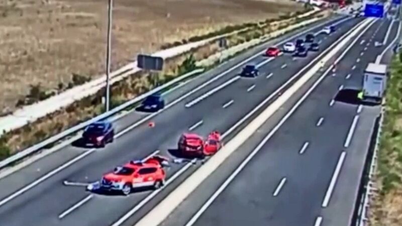 El impacto que se puede ver en el vídeo sucedió el pasado mes de septiembre. En aquel momento, una patrulla de la Policía Foral de Navarra se encontraba estacionada en la autovía del Camino cerca de Zizur Mayor. Asistían a regular el tráfico en la zona, a consecuencia de un accidente previo.