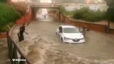 La policía de Fuenlabrada pide a un hombre que salga de su coche en medio de una tormenta. El conductor hizo lo que le decían, y minutos después el vehículo se hundía hasta ser arrastrado por el agua.