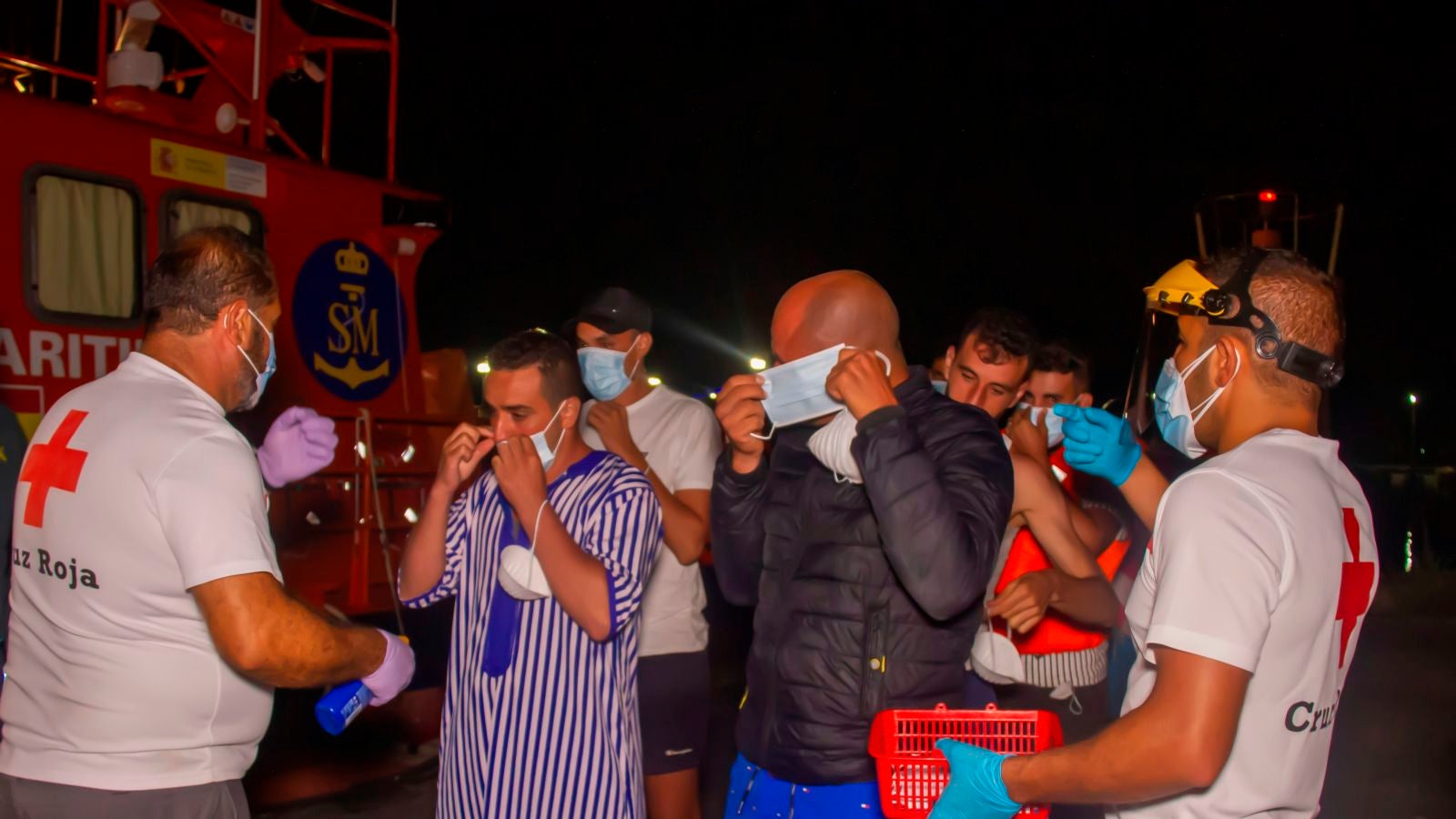 Los ocupantes, ochopersonas, se encuentran en buen estado de salud. CruzRojales ha dispensado una primera atención médica y alimenticia al llegar a la dársena en el puerto.