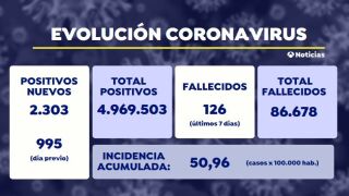 El Ministerio de Sanidad ha notificado 2.303 nuevos contagios por coronavirus y 57 muertes en las últimas 24 horas. Por su parte, la incidencia acumulada sigue a la baja en España con 50,96 casos por cada 100.000 habitantes a 14 días.