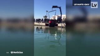 Los buzos del puerto de Canet, en Valencia, han rescatado esta mañana a una conductora que había caído al agua con su coche.