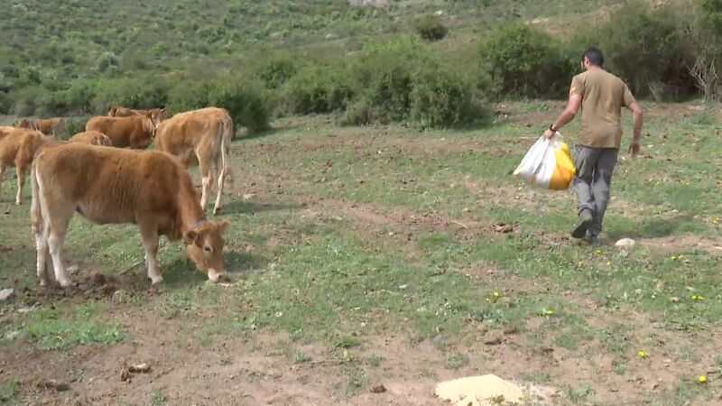 La ausencia de pasto tiene efectos negativos en los animales. Así, los ganaderos indican que una vaca debería pesar cien kilos más, y en el caso del semental esa cifra tendría que ascender hasta los 150 kilos.