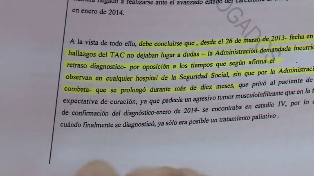 "Ha habido negligencia médica y una dilación exagerada de la lista de espera" asegura el abogado de la familia mostrando la sentencia: "Los hallazgos del TAC no dejaban lugar a dudas"