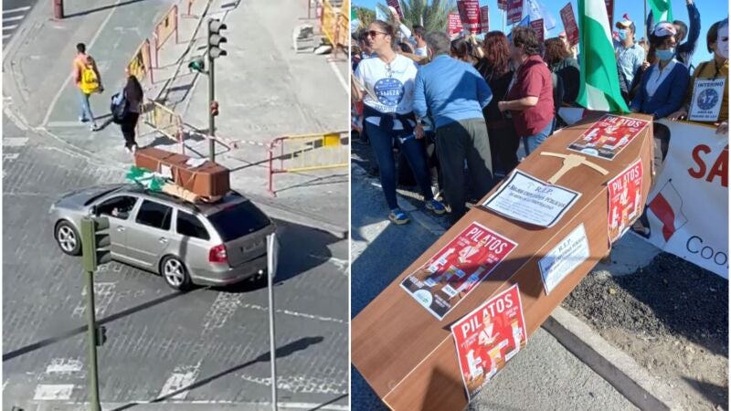Siniestro recorrido por las calles de Sevilla con un ataúd en el techo del vehículo