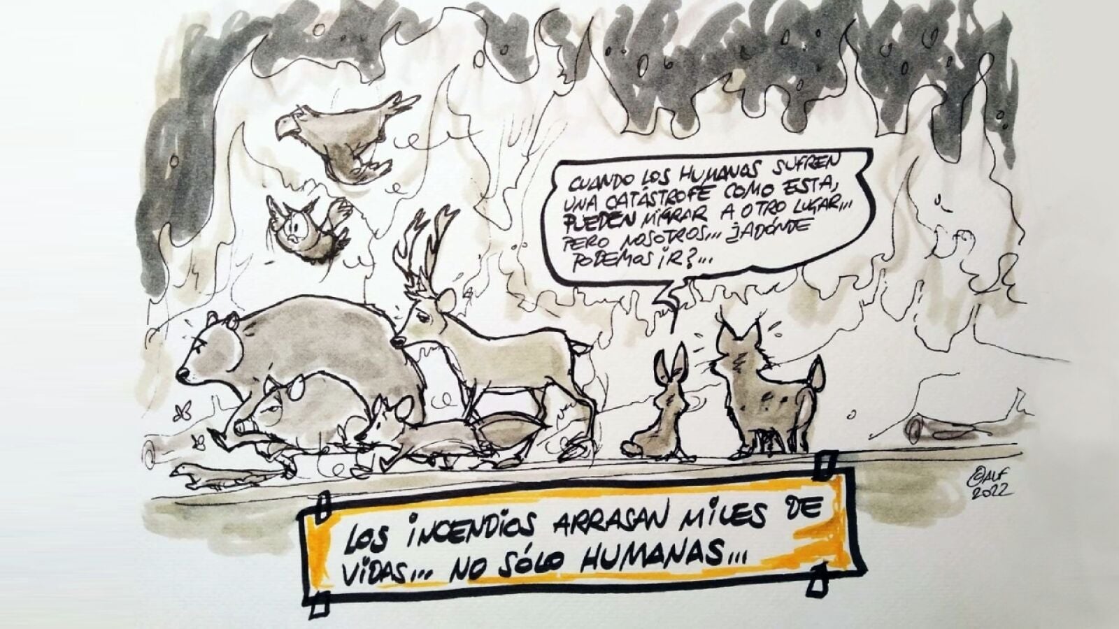 La situación de los animales tras los incendios, protagonista de la viñeta gráfica de Alfredo Boto-Hervás