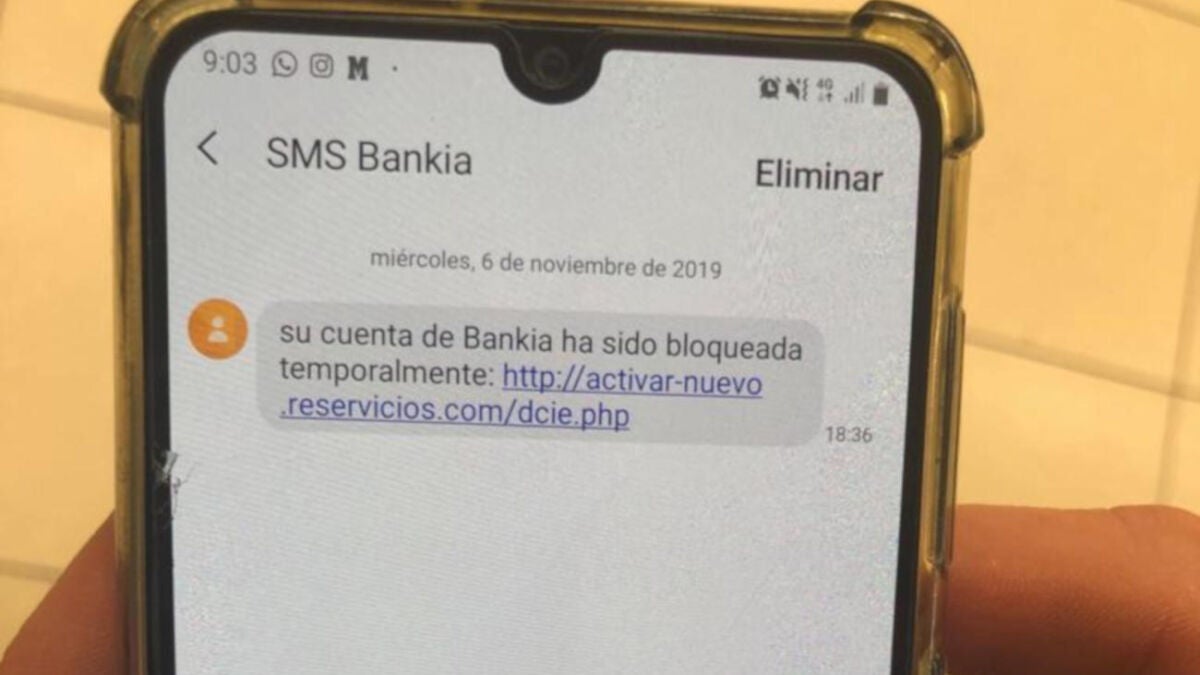 Si le llega un SMS de Bankia en el que dice que su cuenta bancaria "ha sido bloqueada temporalmente", debe saber que se trata de una estafa. Este nuevo 'phishing' lo están recibiendo muchos usuarios, cuyo fin no es más que el de robarle sus datos personales, ya sea su DNI, sus claves de su cuenta bancaria o el número de su teléfono móvil.