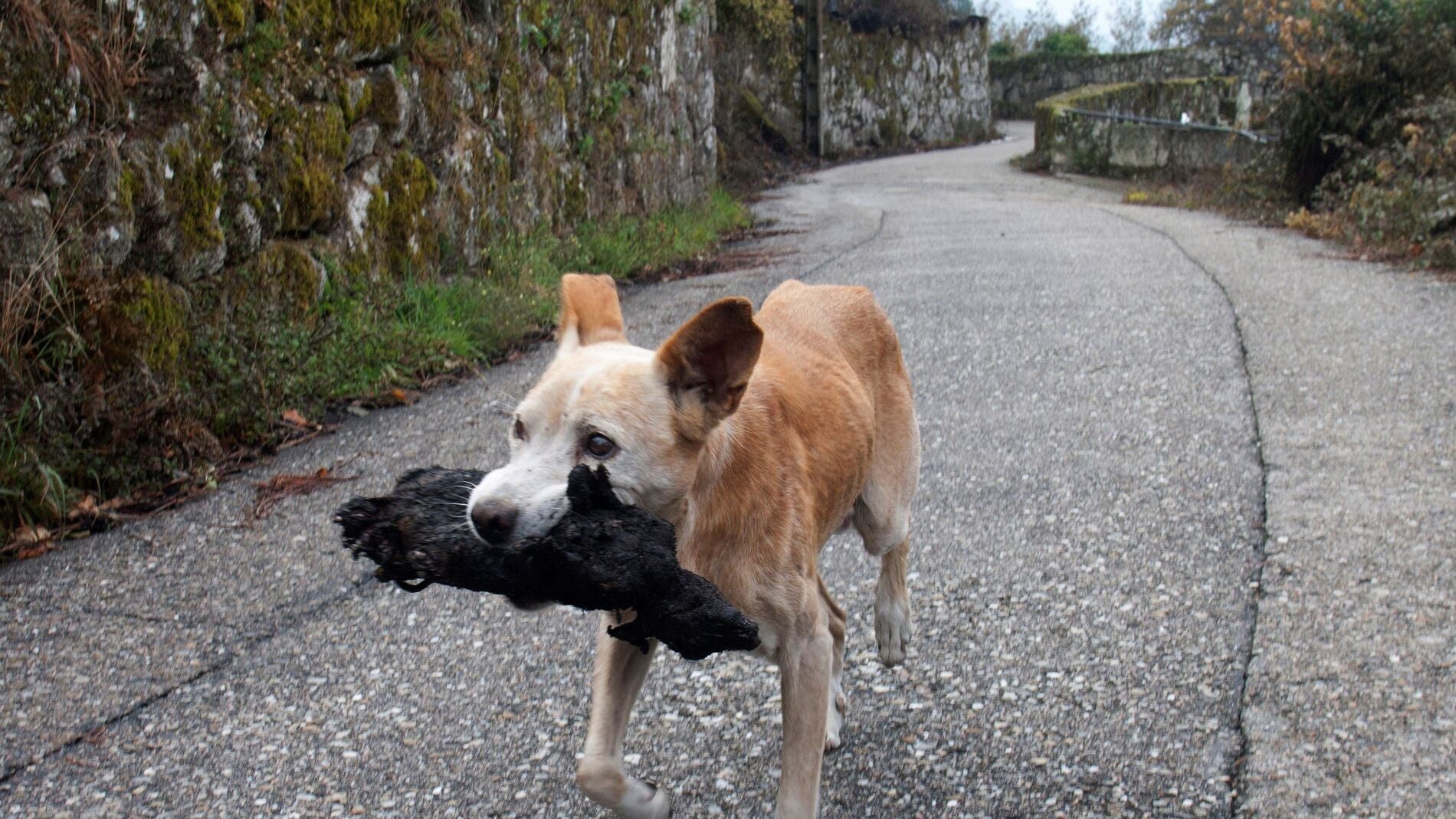 La sobrecogedora imagen de una perrita con el cadáver de su cría en la boca que refleja el paisaje desolador de Galicia