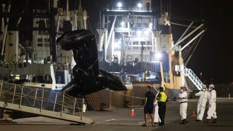 Fue en la madrugada de este lunes cuando el Miguel de Cervantes desembarcó en el Puerto de la Luz y de Las Palmas los cuatro cuerpos que permanecían en la neumática en el momento del rescate.