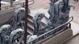 El momento fue grabado por las personas que presenciaron el momento. Muchos, sin palabras. Otros, a carcajadas. En las imágenes se puede ver cómo los dinosaurios -muy educados- salen de la boca de metro y esperan a que un semáforo se ponga en verde para cruzar el paso de peatones. Muchos vídeos se han viralizado en redes, desde muchas perspectivas.