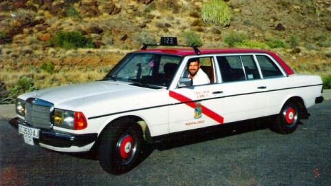 Se llama 'Dominguito', es un Mercedes-Benz W123, tiene la licencia número 16 de taxis de San Bartolomé de Tirajana en Gran Canaria y bate el récord mundial de kilómetros recorridos. Y eso que no ha salido de Canarias.
