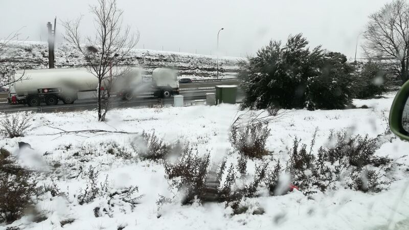 Cientos de carreteras españolas están afectadas por el temporal de nieve que sacude la Península. El aeropuerto de Barajas se ha visto afectado, cerrando dos de sus pistas durante una hora y causando decenas de retrasos en vuelos.
