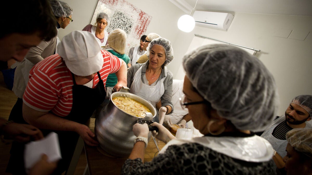 Rauxa es una ONG fundada en 1989, pionera en la lucha contra el alcoholismo y el sinhogarismo, dos lacras relacionadas. Su proyecto estrella es este comedor social en Barcelona, un restaurante que compraron en el año 2000 para reconvertirlo en un lugar de acogida. Cada noche, a partir de las seis de la tarde cenan aquí 150 personas sin recursos. Muchas duermen en la calle y tienen adicciones. Otras aunque tienen techo, no consiguen llegar a final de mes y necesitan ayuda.