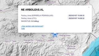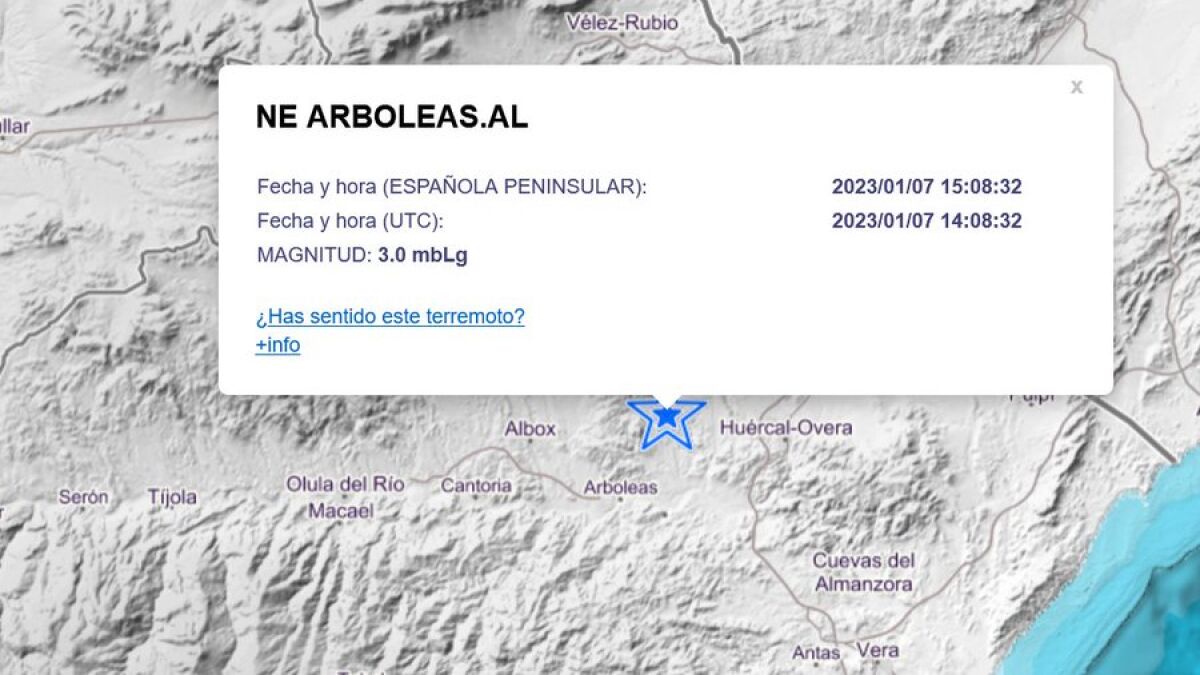 El Instituto Geográfico Nacional (IGN) ha registrado un terremoto de 3 grados en la escala de Richter con epicentro al noroeste de la localidad almeriense de Arboleas. El seísmo también se ha sentido en varios municipios de la provincia, aunque sin incidentes.