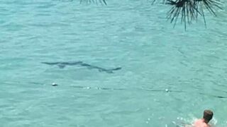 Una tintorera ha sembrado el pánico entre los bañistas de la playa de Illetes, en Mallorca, que se llevaron un buen susto este sábado cuando el escualo, que podía estar desorientado, se acercó a la orilla.