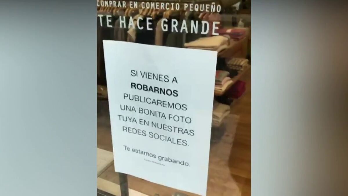 "Si vienes a robarnos publicaremos una bonita foto tuya en nuestras redes sociales. Te estamos grabando". Ese es el texto del cartel que podemos encontrar en la puerta de entrada de la boutique Piluka Miluka de San Sebastián. Todo tiene un motivo. Los constantes robos que sufre el comercio han acabado con la paciencia de su propietaria, Ana Etxebeste, qué espera con esta medida acabar con ellos.