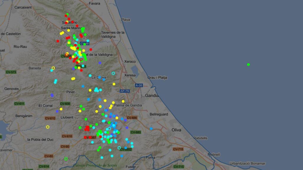 La zona de sierra de la comarca valenciana de la Safor ha registrado este miércoles por la noche una tormenta torrencial que ha dejado ya 206 litros por metro cuadrado en Rótova, de los cuales 72 han caído en solo una hora, según los datos de la red pluviométrica del Júcar recogidos por Aemet. La intensidad está siendo torrencial y lleva aparejada la descarga de numerosos rayos entre los municipios de Ador, Palma de Gandia, Marxuquera Alta y Barx, informa la Agencia Estatal de Meteorología.