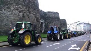 Tractores y ganaderos han tomado durante unas horas las calles de Lugo en señal de protesta. Unas 300 personas se han concentrado ante la Xunta de Galicia para manifestarse por los bajos precios de la leche: “Producir un litro de leche nos cuesta alrededor de 40 céntimos y nos lo están pagando a 32. Nos están arruinando” dice Jose Luis Perez, presidente de Agromuralla (asociación que convocaba la protesta).