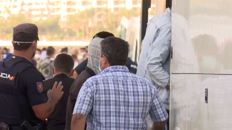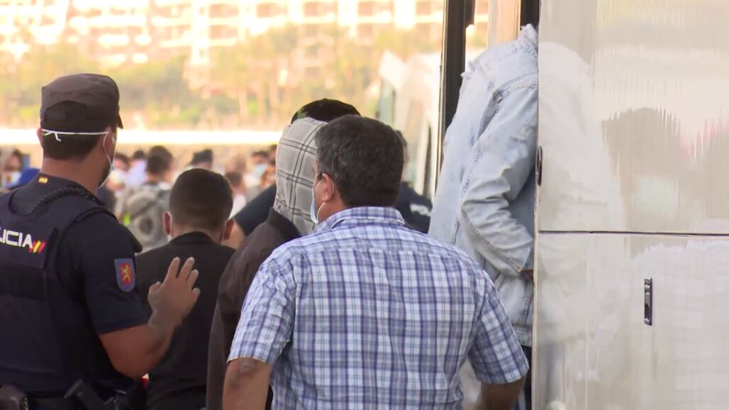 La situación en las islas Canarias empieza a ser insostenible. En lo que va de año han llegado a las islas casi 17.000 inmigrantes, y no hay capacidad para acoger a todos. Los primeros inmigrantes salen del muelle de Arguineguín, en Gran Canaria, hacia el centro de acogida que ha montado el Ejército en Barranco Seco.