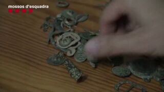 En las entradas que se llevaron a cabo en los domicilios de los investigados, en Sant Jaume dels Domenys y en dos locales ubicados en Banyeres del Penedès y en Terrassa (Barcelona), los agentes intervinieron tres detectores de metal, piezas de diversa procedencia presuntamente expoliadas, monedas antiguas y material arqueológico clasificado; manuales, libros y documentación relacionada con la actividad ilegal y balanzas de precisión.