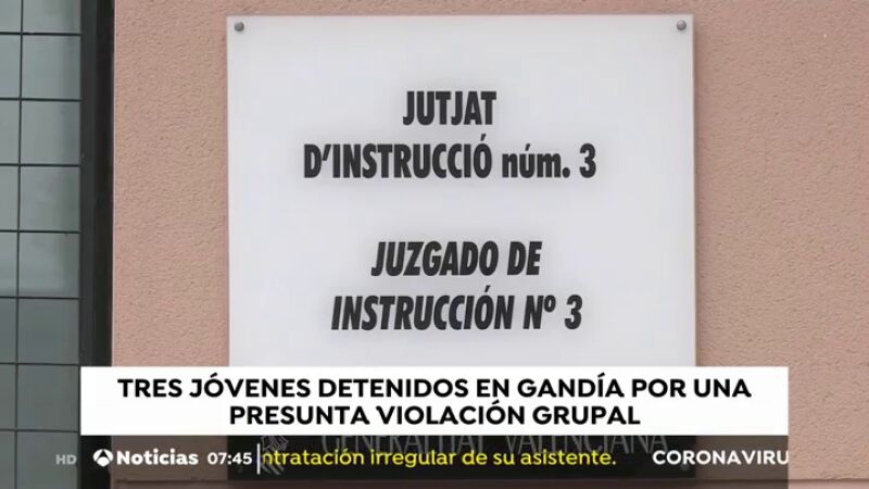 Tres jóvenes, uno de ellos menor de edad, han sido detenidos por una presunta violación grupal a otra menor en Gandía (Valencia).