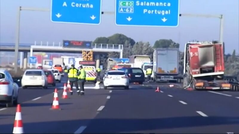 Tres personas han perdido la vida al ser atropellados por un camión en la A-6 a la altura de Tordesillas, Valladolid, cuando estaban ayudando a otro conductor que se quedó parado en el lateral de la vía.