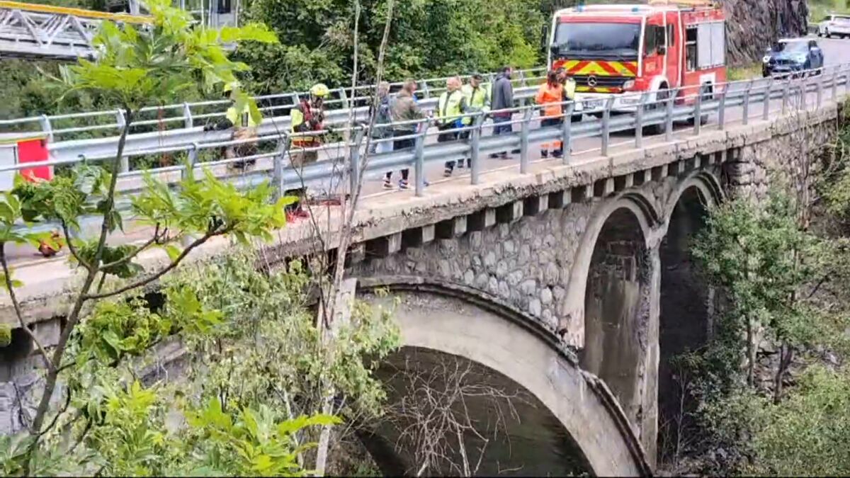 Tres muertos tras caer un coche de una altura de 20 metros en un puente de Benasque