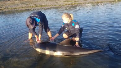Esto fue lo que les salvó la vida a estos dos delfines despistados, incapaces de salir por sí solos de la trampa en la que se habían metido, y condenados a morir al no tener agua suficiente para cubrirse.