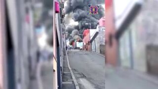 El fuego se ha extendido rápidamente dando lugar a fuertes llamaradas, una extensa columna de humo negro que se divisaba a lo lejos desde varios puntos del norte de la isla, y fuertes explosiones.