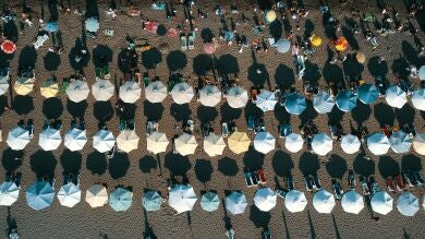 En el verano ya parece inevitable 'la lucha de las sombrillas', un clásico en nuestras playas. Muchos turistas se levantan con la salida del sol para ir hasta la playa, plantan su sombrilla y se vuelven a su casa. Con este gesto 'reservan' sitio para ellos y toda su parentela. Estas acciones tienen fecha de caducidad: en Calpe (Alicante) el malestar de algunos turistas ante lo que denominan la 'invasión de sombrillas' ha hecho que el Ayuntamiento imponga multas de hasta 200 euros.