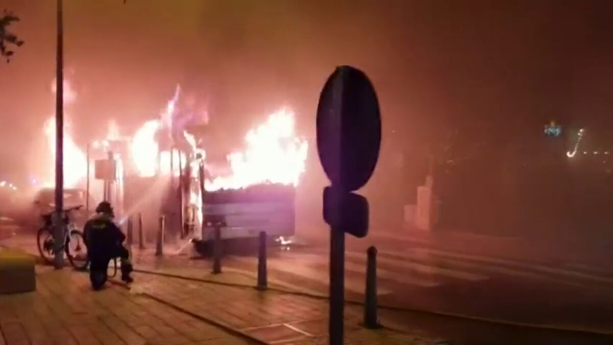 Las llamas que salían del autobús alcanzaron los toldos y terrazas de varios locales además de las fachadas de dos edificios.