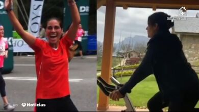 Ahora las carreras continúan, pero desde casa. Dolors entrena mientras su bebé le anima desde la cuna.Y en muchas casas, son los más pequeños los que también se suman a la carrera.