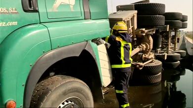 Por causas que se desconocen el conductor del camión perdió el control del vehículo y cayó toda la carga a la calzada. A pesar de lo aparatoso que fue el accidente no ha habido que lamentar heridos. Los operarios tardaron varias horas en retirar el cargamento de la calzada.