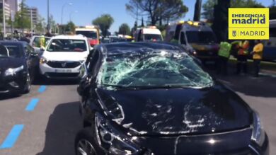 En Madrid, se ha producido un aparatoso accidente entre un coche de Uber y dos taxis.