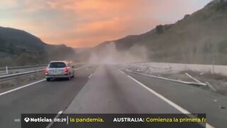 Detrás del camión viajaban un conductor acompañado de un copiloto. Móvil en mano ambos inmortalizaron la escena. Estaba claro para ambos que los bandazos del camión no eran normales y contemplaban la escena con tensión.