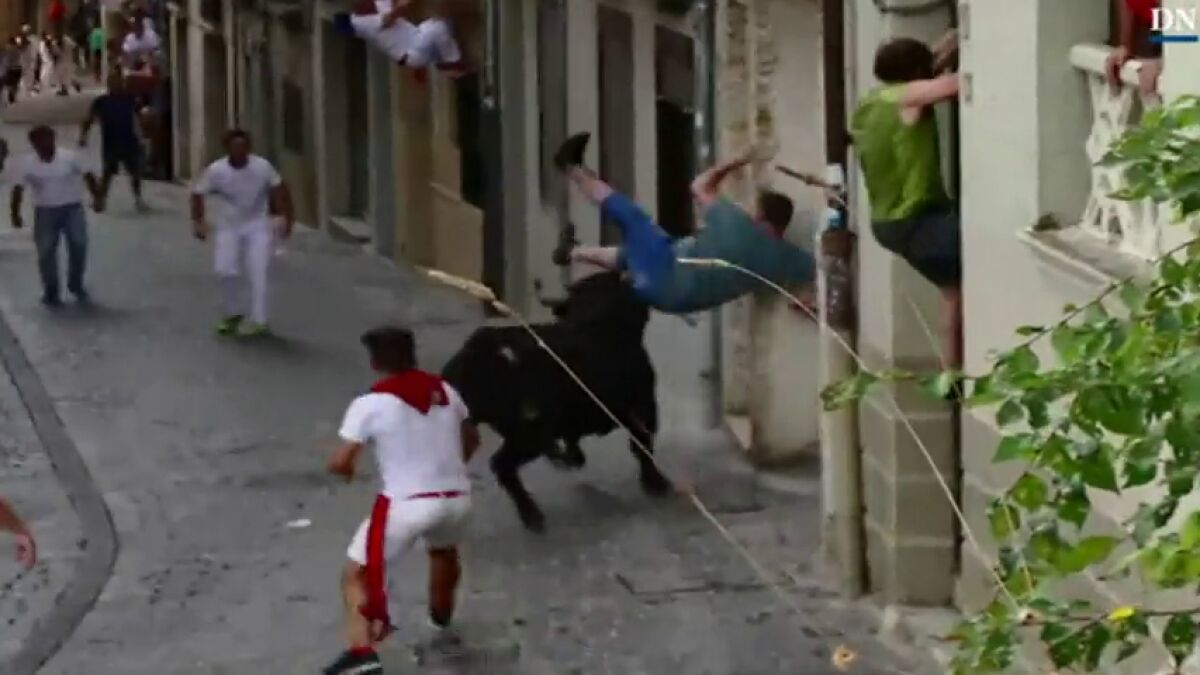 Un corneado en el cuarto encierro en Estella por distraerse con la tablet