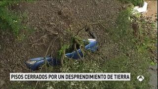 Los vecinos de estos pisos se han llevado un buen susto cuando la ladera se les ha venido encima esta madrugada. No se descarta que pueda haber más derrumbes en la zona tras las fuertes lluvias de los últimos días.