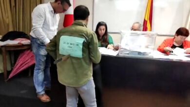 Como anécdota de la jornada, un funcionario ha acudido a votar con un cuchillo clavado en la espalda. Se trataría de una simulación de cuchillo hecha con cartón.