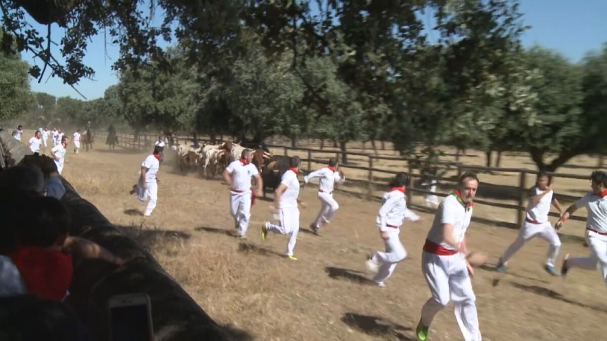 A falta de encierro en Pamplona, un ganadero salmantino ha organizado un encierro. 40 corredores, seis toros y los cabestros han recorrido 850 metros, una distancia similar a la que recorren en Pamplona.