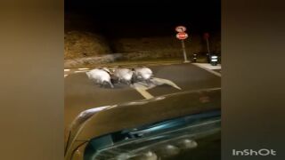 Un conductor ha grabado las imágenes y ha dirigido a los animales por el camino para evitar que causaran un accidente.