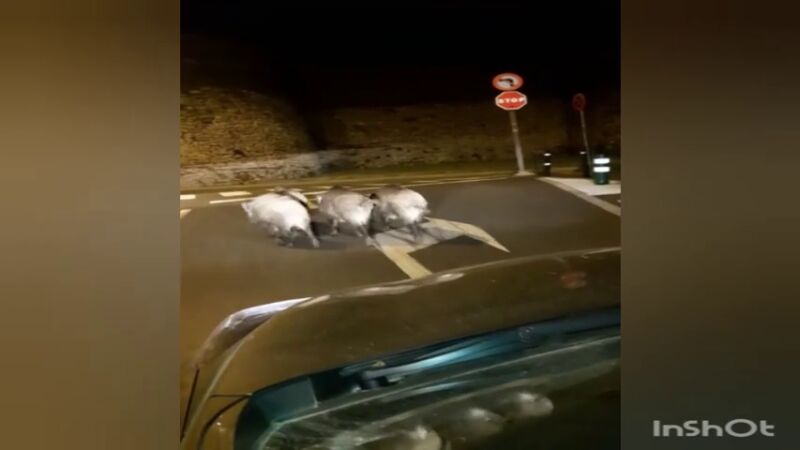 Un grupo de jabalíes ha sorprendido a los vecinos del centro de Lugo y no es la primera vez que ocurre. Cuatro de estos animales se han paseado de madrugada por la calle Poeta Noriega, en dirección a la Ronda da Muralla.
