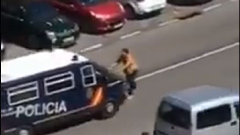 Los agentes de la Policía Nacional le intentaron reducir embistiéndole con un furgón de la policía.