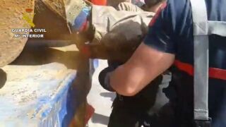 La Guardia Civil, para comprobar que el hombre estaba vivo, introdujo en el tubo al perro adiestrado, de nombre Tango y que en ocho años de servicio ha localizado a más de 1.700 inmigrantes ocultos en dobles fondos.