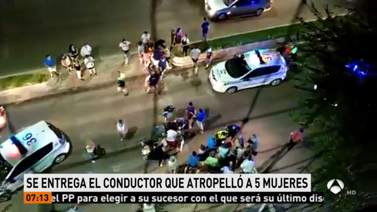 Un hombre se entrega ante la Policía Local después de atropellar a cinco mujeres en un paso de peatones de Jaén. El accidente sucedió este miércoles cuando las mujeres atravesaban por el paso cebra cuando un vehículo a gran velocidad se las llevó por delante y se dio a la fuga. De hecho, la huella de frenada comienza a los 40 metros lo que evidencia la velocidad a la que circulaba el vehículo implicado.