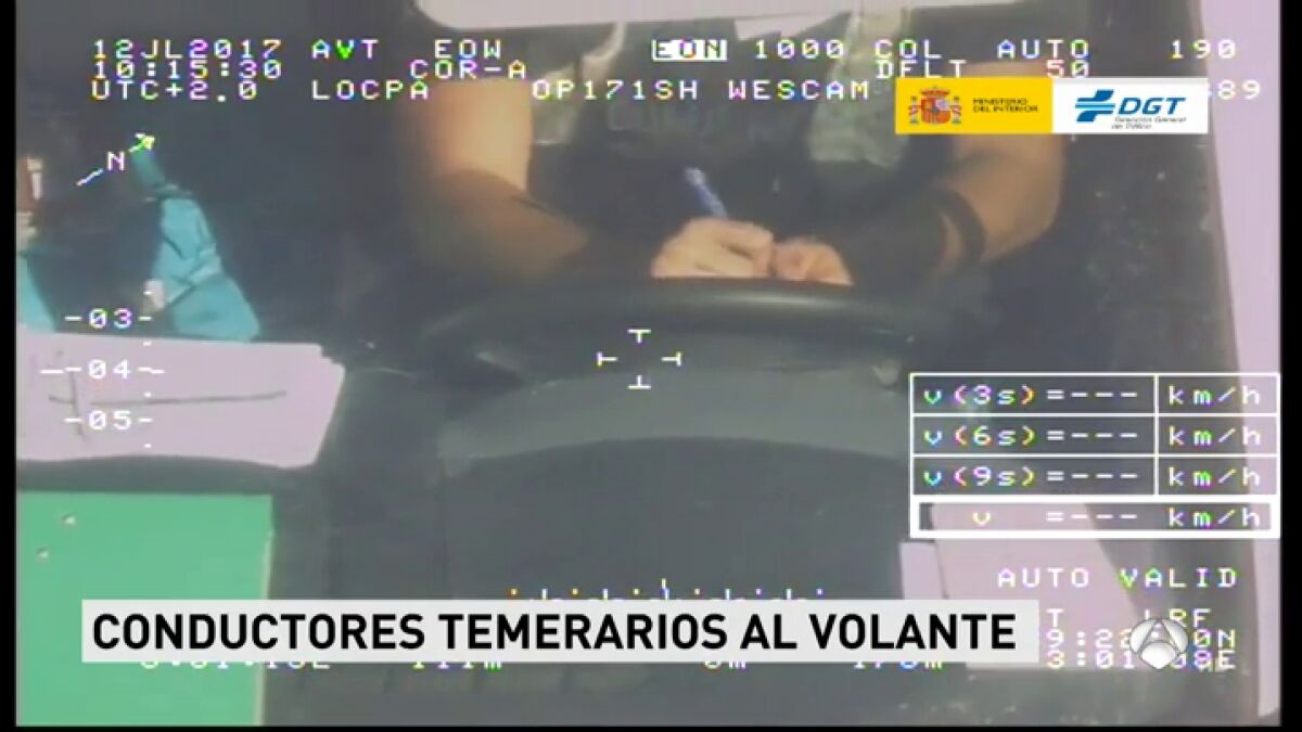 Un hombre tocando las baquetas o una mujer lavándose los dientes estas son las conductas más arriesgadas al volante captadas por la DGT
