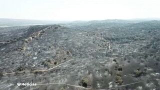 José María, un vecino de la localidad, vio cómo su casa se salvó por centímetros: "Hemos tenido suerte y no ha tocado la estructura pero toda la parcela está quemada".