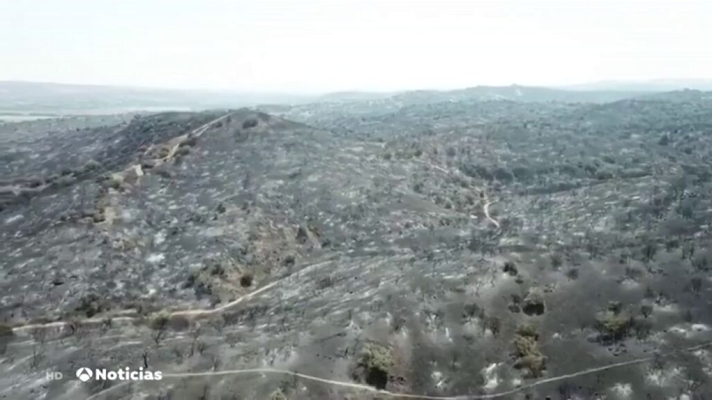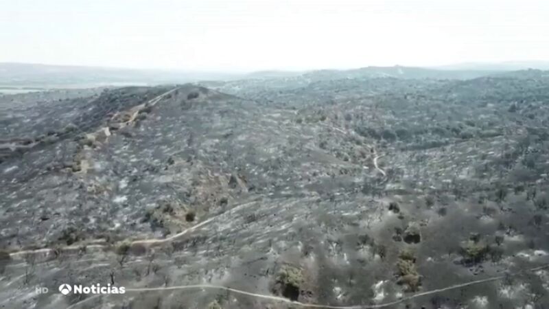 Un incendio declarado a las afueras de Toledo y que ha afectado a 1.600 hectáreas obligó a evacuar a los vecinos de dos urbanizaciones. Tras toda una noche de labores de extinción, los bomberos han logrado cercar el perímetro del fuego, que está casi controlado.